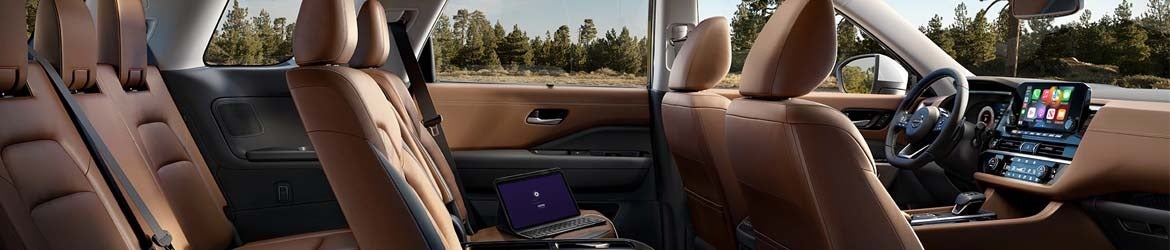 Step inside the 2024 Nissan Pathfinder, and you enter a realm of unparalleled comfort and innovation. The interior is a functional sanctuary of sophistication. Seating up to 8 with an advanced configurable system and access from both sides, you can maneuver easily in your SUV. Over 80 cu. ft. of cargo room allows you to bring along everything the family needs. The Pathfinder doesn’t forget you, the driver, with plush seats that cradle you in comfort to the state-of-the-art infotainment system that keeps you connected, every aspect of the Pathfinder's interior is crafted to enhance your journey. The cabin is not just a space; it's a personal oasis, tailored to provide an experience that's as rewarding as the destination.