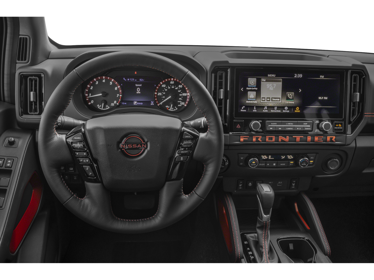 CHARCOAL W/LAVA RED ST, LEATHER SEAT TRIM -inc: For front and rear seats (1st/2nd rows), BOULDER GRAY PEARL, [T11] TOW PACKAGE (T11) -inc: tow hitch and tow harness, [P01] PRO PREMIUM PACKAGE -inc: Auto-Dimming Mirror, Nissan Door-to-Door Navigation, Traffic Sign Recognition (TSR), Fender Premium Audio System w/10 Speakers, dual subwoofer, Partial Under-Seat Storage Delete, HomeLink UGDO, Auto-Tilt & Slide Sunroof w/Manual Shade, [M92] ESSENTIALS KIT -inc: adventure medic kit, off-road adventure kit, seatback organizer and owner's manual portfolio, [L11] PRO-4X CARPETED FLOOR MATS, [K04] PRO-4X CONVENIENCE PACKAGE -inc: Bed Under-Rail Lighting, Remote Engine Starter, 120V Power Outlet in Bed, Heated Front Seats, Intelligent Around View Monitor (I-AVM), Moving Object Detection (MOD) and enhanced off-road mode, Utili-Track System, 2 adjustable tie-down cleats, Spray-In Bedliner, Trailer Hitch w/Wiring Harness, Heated Steering Wheel, Wireless Charging for Personal Devices, Heated Outside Mirrors, 120V Power Outlet in Rear Center Console, [F92] ELECTRONIC TAILGATE LOCK, [E10] PREMIUM PAINT, [B93] OFF-ROAD STYLE STEP RAILS. This Nissan Frontier has a dependable Regular Unleaded V-6 3.8 L/231 engine powering this Automatic transmission.