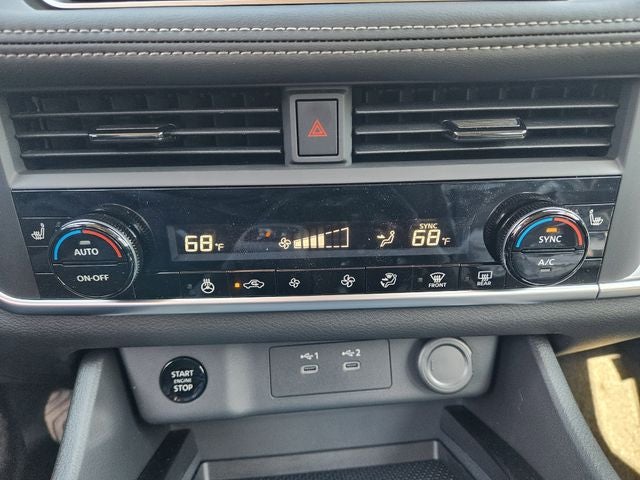 The cabin of the Rogue Dark Armor is a sanctuary of comfort and convenience. Heated front bucket seats, a heated steering wheel, and dual-zone automatic climate control ensure you and your passengers stay cozy, no matter the weather. The premium Prima-Tex leatherette seat trim adds a touch of luxury, while the power moonroof and power liftgate provide added convenience.