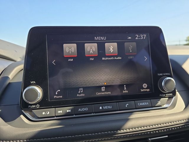 - Radio: AM/FM NissanConnect -inc: 6 speakers plus 2 tweeters, Apple CarPlay, Android Auto, 8" color touch screen display, Bluetooth®, 2 front USB type-C, Wi-Fi hotspot and NissanConnect Services powered by SiriusXM