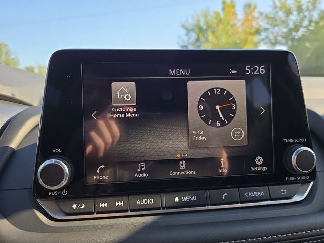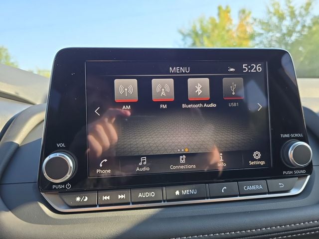 - Radio: AM/FM NissanConnect -inc: 6 speakers plus 2 tweeters, Apple CarPlay, Android Auto, 8" color touch screen display, Bluetooth®, 2 front USB type-C, Wi-Fi hotspot and NissanConnect Services powered by SiriusXM