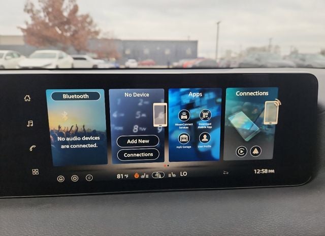 - Radio: AM/FM w/RDS/MP3 -inc: 6 speakers, 12.3" NissanConnect multimedia center display, Bluetooth® hands-free phone system, streaming audio via Bluetooth®, hands-free text messaging assistant, Siri Eyes Free, Google Assistant voice recognition, wireless Apple CarPlay and Android Auto, NissanConnect services, Wi-Fi hotspot, Over-The-Air (OTA) updating for headunit firmware via Wi-Fi WPA2 connection and (2) front USB connection port (type C)